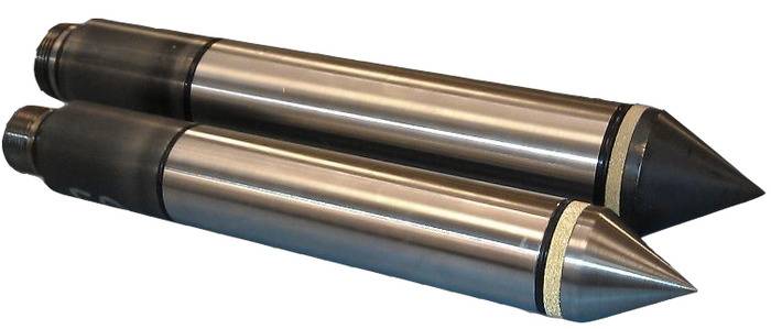 During the 1980s, we worked with Geotech AB to develop a wireless CPT System that has distinct advantages over conventional cable systems. One advantage is that the CPT rods can be pulled in up to 9 metre lengths rather than a 1 metre length, greatly increasing speed for deployment. The most advantageous component is that without the cable inside the cone rods, it permits the operator to inject mud through the rods and it discharges above the transmitter through a ported cone rod. This system is patented by Foundex. This mud injection, along with friction reducers, provides the necessary lubrication to virtually eliminate the friction of the cone rods in the formation. This allows penetration depths that would be impossible to obtain with a cable cone that cannot eliminate rod friction aside from use of friction reducers.